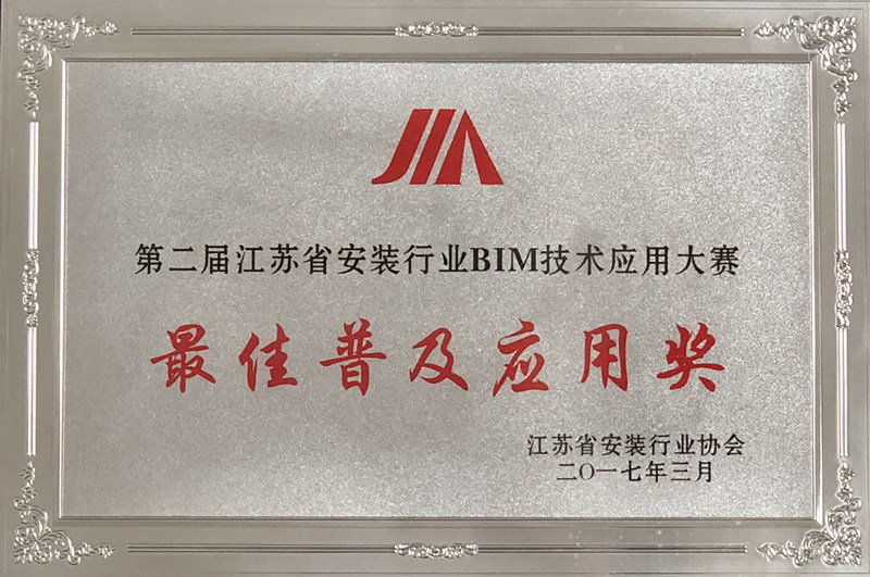 江蘇省安裝行業(yè)BIM技術大賽最佳普及應用獎