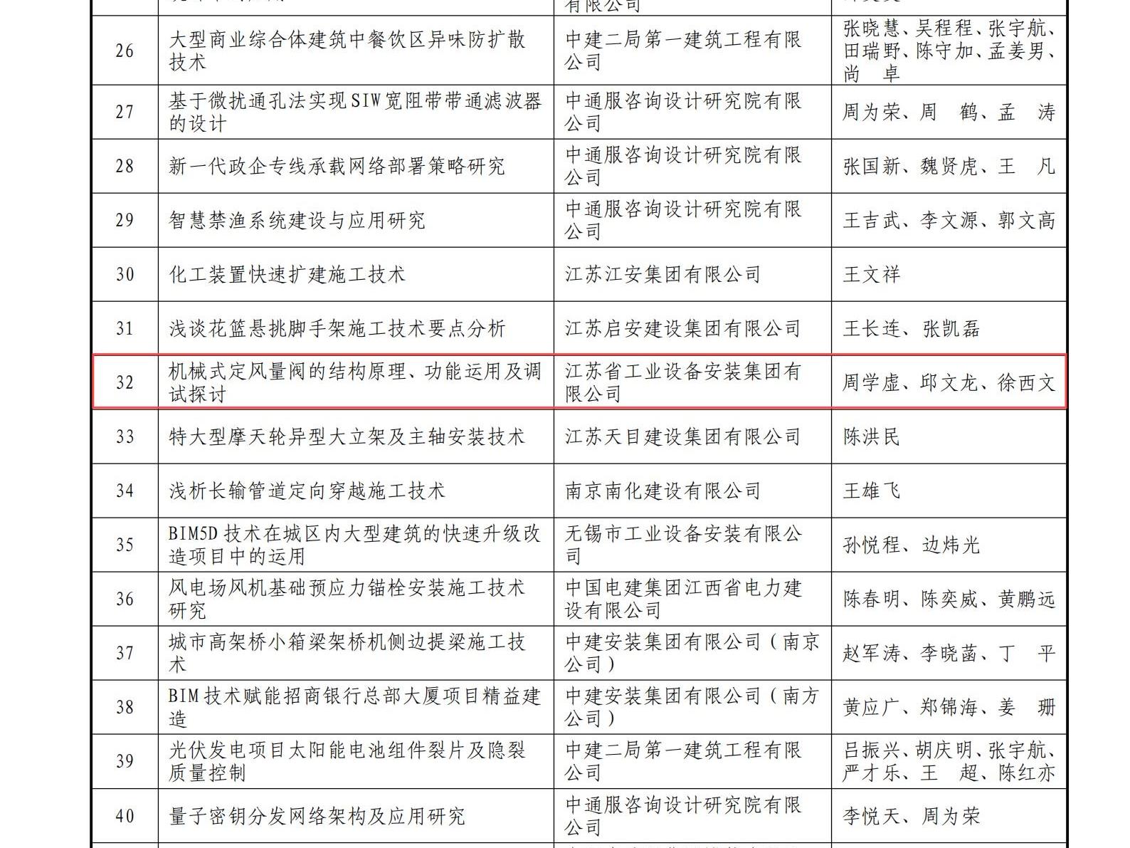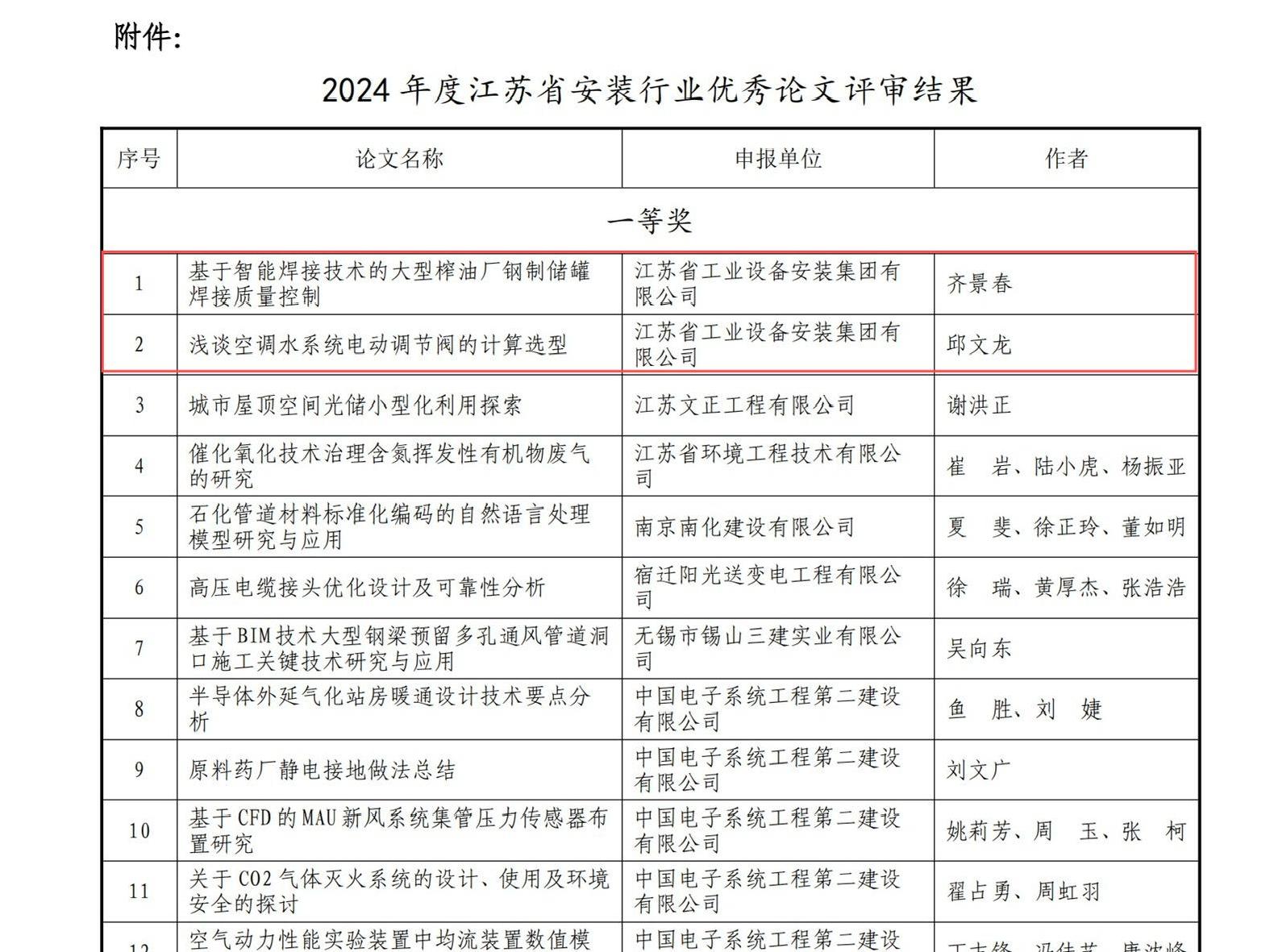 近日,江蘇省安裝行業(yè)協(xié)會頒布了“關(guān)于公布2024年度江蘇省安裝行業(yè)優(yōu)秀論文評選結(jié)果的通知”,我司共申報16篇論文全部獲獎,包括三篇獲評價一等獎、四篇獲評二等獎,其余為三等獎。
