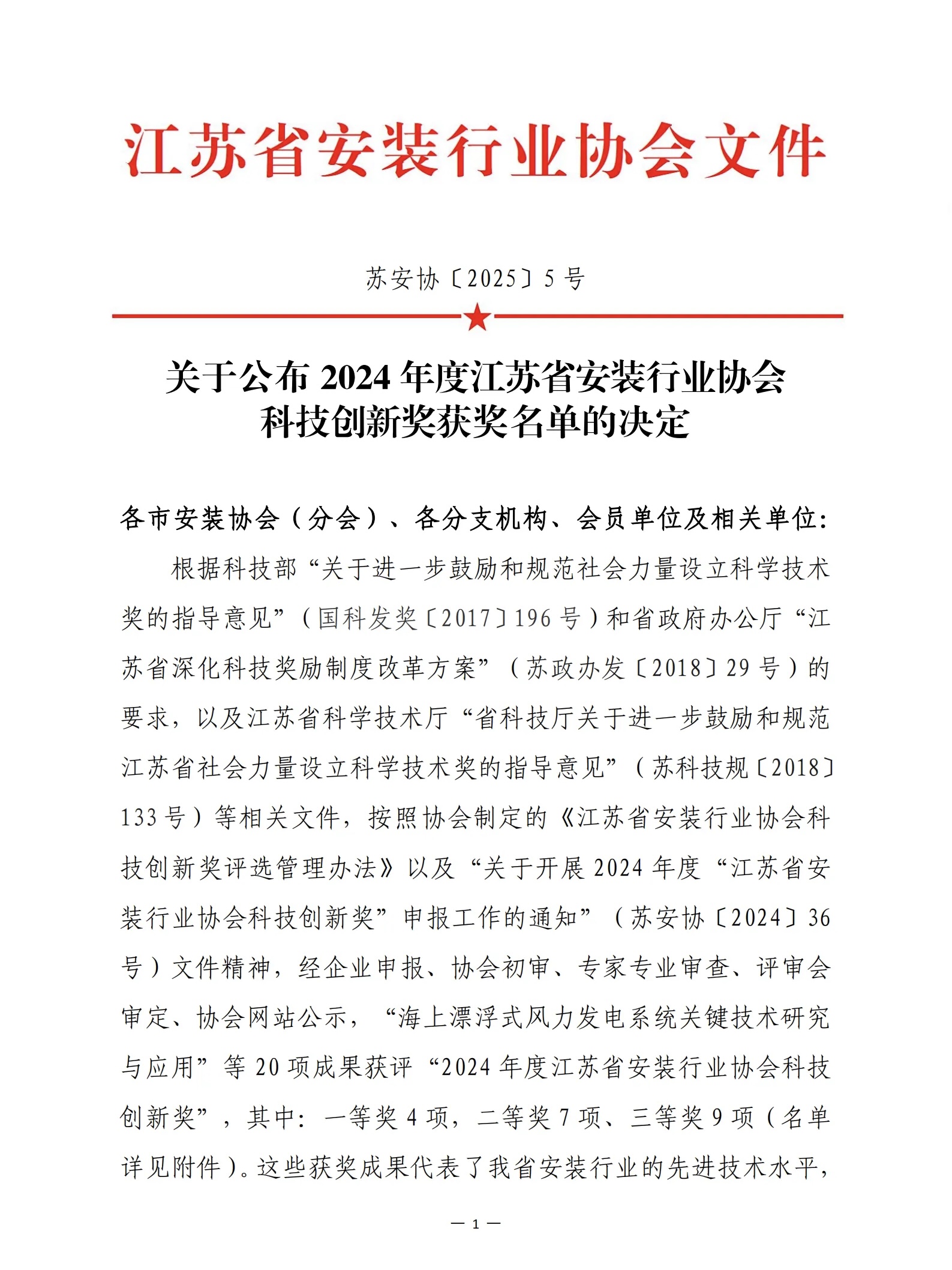 我司再度蟬聯(lián)2024年度江蘇省安裝行業(yè)“安裝百強(qiáng)企業(yè)”