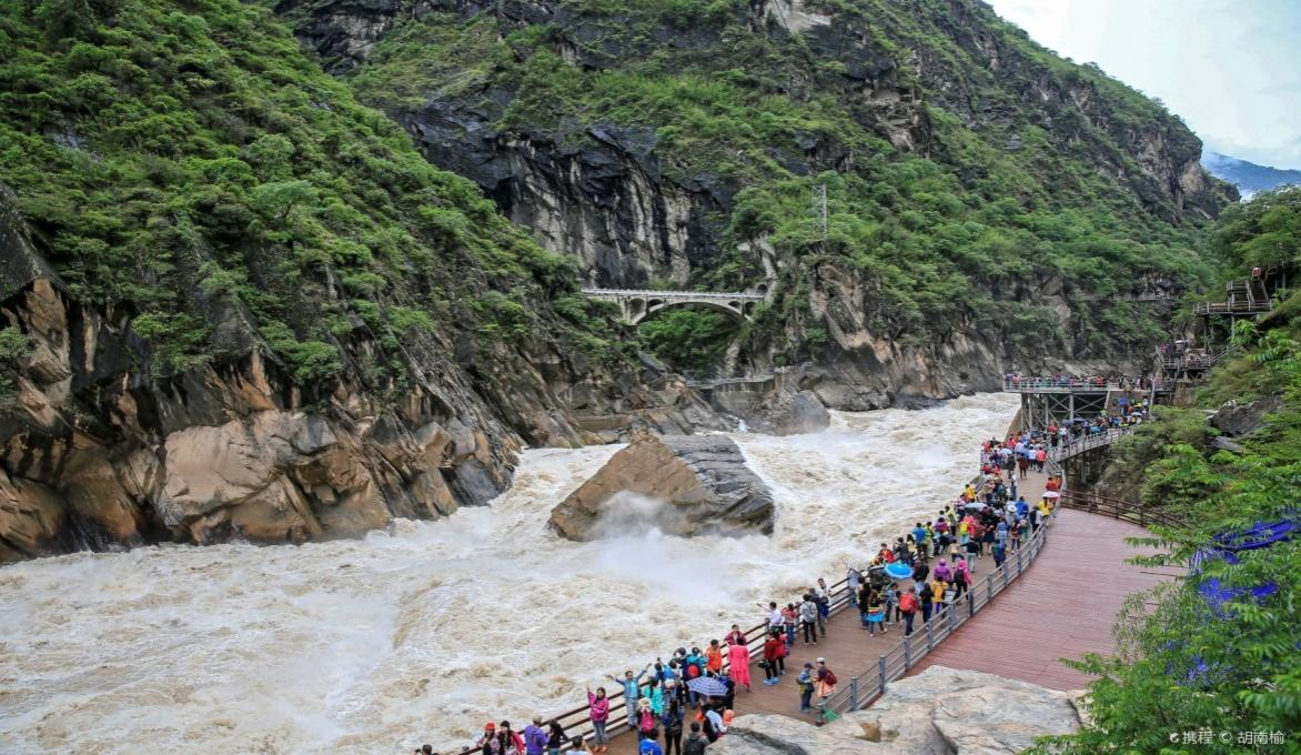 長(zhǎng)江第一灣位于云南省西北部的麗江市石鼓鎮(zhèn)與香格里拉縣南部沙松碧村之間,海拔1850米,距香格里拉縣城130公里。附近景點(diǎn):虎跳峽。萬(wàn)里長(zhǎng)江從"世界屋脊"--青藏高原奔騰而下,到了香格里拉縣的沙松碧村,突然來(lái)了個(gè)100多度的急轉(zhuǎn)彎,轉(zhuǎn)向東北,形成了罕見(jiàn)的"V"字形大彎,"江流到此成逆轉(zhuǎn),奔入中原壯大觀",人們稱(chēng)這天下奇觀為"長(zhǎng)江第一灣"?;⑻鴯{是萬(wàn)里長(zhǎng)江第一峽谷,以險(xiǎn)而聞名天下。因行程較緊,大家在此觀景留影后,繼續(xù)前行。