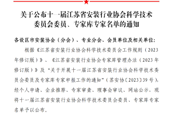 這些入選的專家和委員,都是在安裝行業(yè)中具有深厚專業(yè)知識和豐富實踐經(jīng)驗的人才,他們的入選不僅代表了行業(yè)對我司技術(shù)實力的認(rèn)可,也標(biāo)志著我司在安裝行業(yè)中的地位和影響力不斷提升。