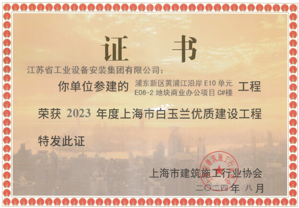 日前,上海市建筑施工行業(yè)協(xié)會(huì)傳來(lái)喜訊,由我司上海分公司承建的浦東新區(qū)黃浦江沿岸E10單元E06-2地塊商業(yè)辦公項(xiàng)目C#樓榮膺“2023年度上海市白玉蘭優(yōu)質(zhì)建設(shè)工程”。這一榮譽(yù)是對(duì)我司在建筑工程領(lǐng)域?qū)I(yè)能力與卓越品質(zhì)的高度認(rèn)可。
