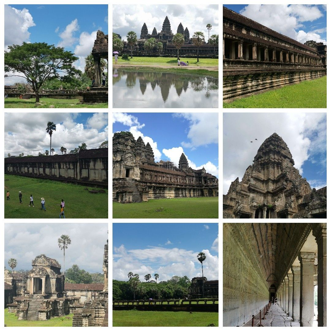 15日上午游覽了世界七大奇跡之一小吳哥窟,也是柬埔寨之旅最精華部分。吳哥窟始建于802年,距今已有1200多年歷史??偨ㄖ菏怯缮皫r石和石灰?guī)r建成,是高棉吳哥王朝全盛時(shí)期所遺留下來(lái)的不朽宗教建筑,全城雕刻之精美,有「雕刻出來(lái)的王城」的美譽(yù)。穿梭在長(zhǎng)長(zhǎng)的回廊之中,靈魂仿佛穿越回到1000多年前高棉吳哥王朝。