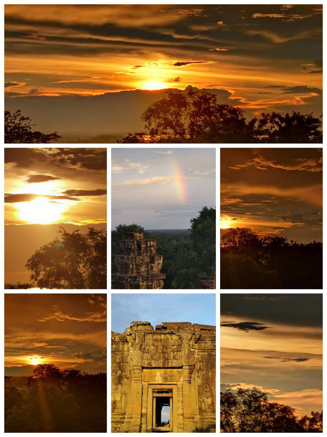參觀完巴戎寺后,來(lái)到巴肯山準(zhǔn)備看日落。天空突然下起了雨,抱著一線希望冒雨登山,在山頂雨中等待日落,柬埔寨的雨就是這么善解人意,不僅讓我們完美地遇上日落,還贈(zèng)送了彩虹,了無(wú)遺憾!雨中等日落也給我們一些啟示,遇到覺(jué)得不可能實(shí)現(xiàn)的事情不要輕易放棄,堅(jiān)持一下也許就有轉(zhuǎn)機(jī)。